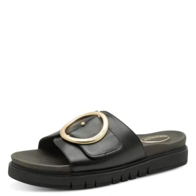 MULTI-ADJUSTABLE: Our multi-adjustable technology allows the Velcro straps at the ankle and ball of the foot to be individually adjusted for a perfect fit. WIDE FIT: The standard wide fit provides your feet with extra room to move comfortably, ensuring a pleasant wearing experience. HIGH-QUALITY MATERIAL: The shoes are made of leather that is comfortable, especially durable, and hard-wearing. STYLISH CASUALNESS: The mules are perfect for summer outings, garden parties, or leisurely city walks. They provide maximum comfort and lend a casual yet chic note to every look. TAMARIS COMFORT: The combination of style and comfort is paramount in the Tamaris Comfort line. Individual wearing comfort is emphasized through wide fit and other innovative technologies.