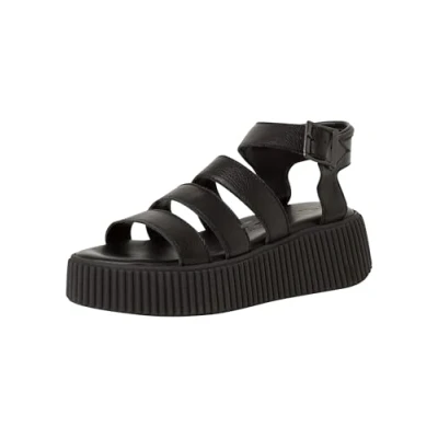 The material mix of leather and synthetics ensures a comfortable fit The round toe and wedge heel give the shoe a modern look Thanks to the closure with clasp, the sandal is easy to put on and take off