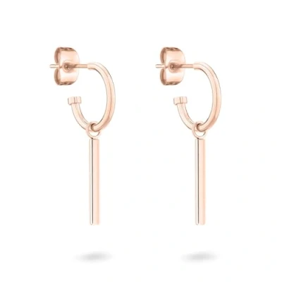 Tamaris Hoop earrings with stainless steel rod pendant Material: stainless steel IP rose gold polished, size: 3.5 cm, clasp: buckle Packaged in an original Tamaris fabric bag. The Tamaris jewellery and watch collection impresses with its timeless design in high quality. Perfect as a gift idea for your favourite people
