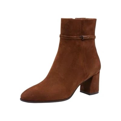 Elegant ankle boot in brown made from high-quality leather for a classic look. Comfortable textile and synthetic lining for a comfortable fit. Touch-It technology ensures perfect comfort and cushioning all day long. Convenient zipper allows easy on and off of the ankle boot. Block heel provides stability while adding a feminine silhouette.
