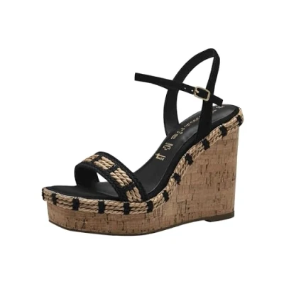 Tamaris Women' 1 28041 42 Wedge Sandal, Black, 5 UK