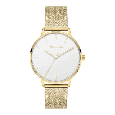 The beautiful Tamaris women's watch impresses with its classic yet modern look. Metal housing IP gold polished, 36 mm, scratch-resistant mineral glass, water resistance tested up to 3 bar/ATM High-quality stainless steel strap with folding clasp. The interchangeable spring bars make it easy to change the strap. Easy-to-read dial and reliable quartz movement.