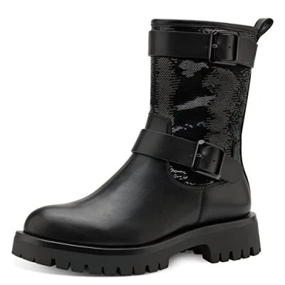 Tamaris Women Biker Boots, Ladies Ankle Boots,TOUCHit Footbed,Boots,Half Boots,Biker Boot,Flat,Black,36 EU