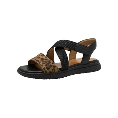 Tamaris Women's Comfort Damen Flache Sandale Flat, Black Leo, 3.5 UK