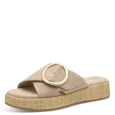 Tamaris Women's Comfort Damen Pantolette Leder Wide Fit Wedge Sandal, Beige, 6.5 UK