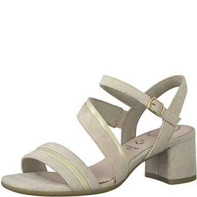 Tamaris Women's 8 88302 20 Leather Comfort Fit Interchangeable Footbed Adjustable Strap Business Modern Party Heeled Sandal, Beige, 4.5 UK