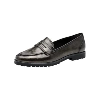 Soft Touchit footbed adapts to your foot shape for optimal comfort. Elegant loafer design with shiny surface and stylish buckle as a highlight. Flat, textured sole provides a secure grip and ensures relaxed walking. Round toe and padded insole guarantee versatile style and comfort. Perfect for office, everyday wear and formal occasions - stylish and versatile.