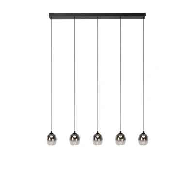 The Lucide TAMINO pendant lamp is an elegant choice for any modern space. Equipped with integrated dimmable LED light sources, this lamp emits warm white light (3000K), creating a pleasant ambiance in any room. The lamp is height-adjustable during installation, offering flexibility for different interior styles and ceiling heights. Made of high-quality metal with a stylish black finish and smoked glass globes, the TAMINO exudes sophistication. With a total energy consumption of just 5x5.6W, this pendant lamp is energy-efficient and durable. It is compatible with a dimmer (not included), allowing you to adjust the light intensity to your preference. Unique product features: • With integrated dimmable LED light sources • Fitted with warm white light (3000K) • This lamp is adjustable in height • Easy to connect to a dimmer (excl.) • Made of high quality metal Important product features: • Energy consumption: 5x5,6W / 230V / Dimmable (Light bulbs included) • Dimensions: L.127 x W.12 x