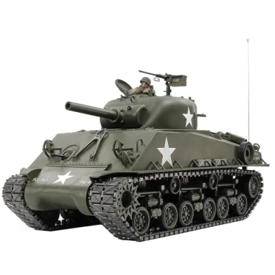 Detailed 1:16 RC kit of the M4 Sherman 105 mm Howitzer - With the following dimensions: length 376 mm, width: 183 mm, height: 205 mm, the model offers an impressively realistic replica of the battle tank. Updated version of item 56014 - This updated version impresses with a completely new transmission and a powerful 540 electric motor that replaces the previous two 380 motors. Package Contents - The package includes an electronic speed controller, a type 540 motor, the tank is fully ball bearings, pre-assembled chains with metal pins and connectors. The RC tank can be driven with a standard 2-channel remote control. First in Quality Around the World - This is the promise of the Japanese market leader in electronics and model vehicles. Each model undergoes a meticulous quality inspection. Since 1946., Manufacturer: TAMIYA