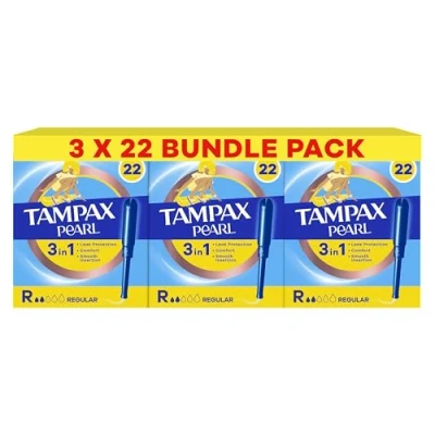 Tampax Pearl Regular Tampons with Applicator 3x22, 3in1 Leak Protection, Comfort and Easy Insertion