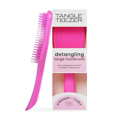 ALL HAIR TYPES: Tangle Teezer Large Ultimate Detangler Hairbrush is specially designed for long, thick, straight, wavy and curly hair; use on wet hair, dry locks, or hair extensions and wigs HAIR BRUSH: a bigger detangling paddle brush for bigger tangles, specially designed with 325 two-tiered teeth that glide effortlessly through wet or dry hair, minimising breakage, leaving hair smooth and shiny DETANGLING BRUSH: the flexible two-tiered teeth effortlessly detangle knots without breakage or damage; it's gentle on vulnerable, shower-fresh hair and dry locks, even hair extensions and wigs SCALP BRUSH: Healthy hair starts from the scalp; bristles are gentle on the scalp, stimulating circulation and hair growth, while minimising scalp irritation; optimal for sensitive skin HAIRCARE ROUTINE: for best results, prep your scalp with Tangle Teezer Scalp Exfoliator and Massager, using your detangler hair brush, style with our blow dry hair brush and styling comb
