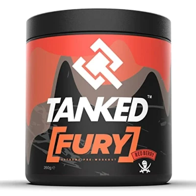 TANKED FURY - Pre-workout brings a whole new level of intensity into your workout program! FURY Contains - Ca¬ffeine, Bitter Orange Peel, Beta Alanine, and Citrulline malate – which are designed for unbeatable pumps & endurance. Whether you're hitting the weights/lifting heavy, smashing cardio, or taking part in your chosen sport, you will love this pre-workout. BENEFITS - FURY covers everything you need: Energy, Pumps, Endurance & Recovery. FURY takes things from amateur league to premiership in every delicious scoop. Killer Pumps, Insane Focus & Killer Energy. And it tastes like candy! RESULTS - Fury has been designed to provide the best of all athletic improvement supplements in one. It enhances athletic performance and endurance by increasing your capacity to train intensely for longer, provides incredible pumps and reduces muscle fatigue, as well as, assisting with recovery. FLAVOURS - Available in 4 delicious flavours: Blue Raspberry, Cola, Red Berry & Strawberry Lime SERVINGS - 6.5g (1 Scoop) (260g = 40 Servings)