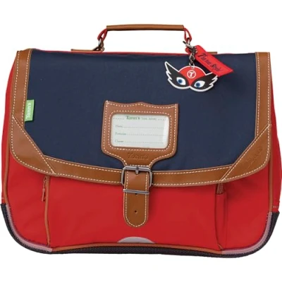 An iconic model from Tann's, the Arthur model continues to appeal to parents and children thanks to its retro chic look and its timeless navy/red colour combination. Its difference: its superhero keychain in rubber, nod to the passions of children. School bag 35 cm suitable for CP classes. Heavy duty and built to last. Eco-friendly material: high-quality polyester from recycled plastic bottles. Water resistant material. School bag equipped with a compartment that can accommodate 24 x 32 cm notebooks and documents in A4 format. Front zip pocket Lightweight, less than 1kg on average 730g Ergonomic and comfortable back and shoulder straps
