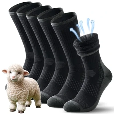 AmazonOutstanding Breathability Mens Socks--still worried about sweaty feet during outdoor activities?TANSTC mens merino wool hiking socks are super breathable and moisture wicking,ensuring your feet stay dry and comfortable during exercise. say goodbye to damp and smelly feet! Why Merino Wool Hiking Socks?--Merino wool is warmer and softer than regular wool and is easy to wear against the skin.it wicks sweat away from the body quickly and provides greater breathability.keeps your feet dry while working,hiking, trekking, camping,hunting,ice fishing,or playing sports,and regulates your body temperature to keep you warm in winter and cool in summer. High Performance Walking Socks:--if you're looking for hiking socks that have high-performance,look no further.our socks use advanced knitting technology to ensure a comfortable fit.these thick socks have thick terry on the forefoot, heel and toe specifically designed to reduce friction to avoid annoying blisters and provide shock-absorbing protection during sports and reduce the risk of foot injuries. Multi-Part Functional Design Outdoor Socks--these unisex walking crew socks are designed with a mid-calf design that sits on the calf to prevent chafing of the boots,perfect for all seasons,perfect for high-top hiking boots or trainers and casual shoes,highly elasticated cuffs prevent the socks from becoming too loose or too tight after long periods of wear,ensuring that the socks do not fall off. Multiple Uses Sports Socks--Merino wool Work Socks for men and women are super suitable for all outdoor sports,such as running,hiking, camping, biking,mountaineering and so on.in addition, these anti-blister cushion socks are perfect for home socks, it is also a best gift for sports fan,boyfriends, girlfriends,family or colleagues.