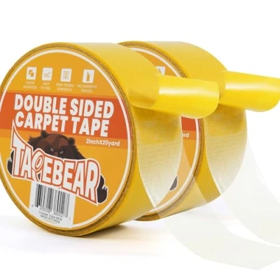 TAPEBEAR Heavy Duty Double Side Carpet Tape 2Rolls X 50mm 18m, Removable for Area Rugs, Multipurpose Gripper Non Slip Wood Floor and Outdoor Residue Free, 2inch 20yard