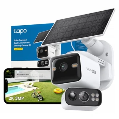 Tapo C645D KIT 2K 3MP Dual Lens Solar Security Camera Outdoor Wireless,Smart AI Camera,Night Colour,Ultra Wide Angle,Live Stream CCTV,IP65,Alexa,Google Home,Flexible Storage,No Monthly fee