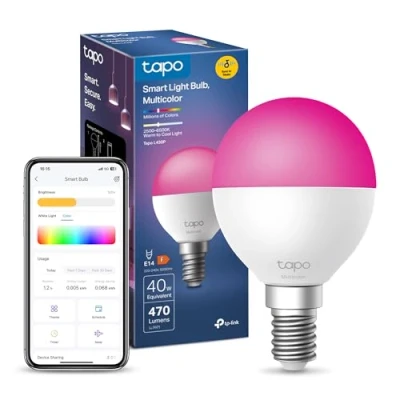Tapo L430P, E14 Smart Bulb,Alexa Light Bulbs with Millions Colours,470 Lumens,Dimmable,Auto Biorhythm,Music Sync,Voice/APP Control,Schedule & Timer, Google Home, No Hub Required,Energy Monitor