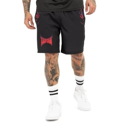Tapout Men's Taproot Shorts, Black/Red/Aubergine, L