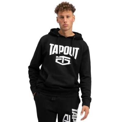 Tapout Men's Active Basic Hoodie Hooded Sweatshirt, Black/White, L