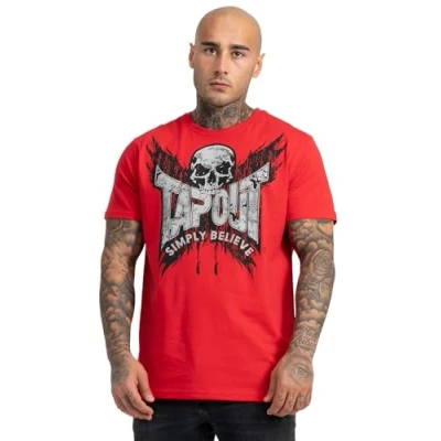 Tapout Men's Creston T Shirt, Red/Black/Silver, S