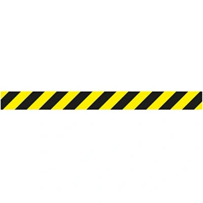 Define spaces and manage queues safely with ground traffic strips Strong adhesive is easy to apply to any smooth and clean surface: tiles, parquet, linoleum, marble, concrete. Indoor use Material: vinyl sticker with protective varnish, 450 μ solid, high quality and strong permanent adhesion. Non-slip medium texture, tear-resistant and abrasion resistant Colour: yellow/black. Length 1000 x Width 90 mm