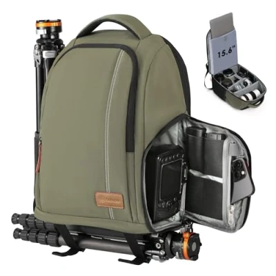 TARION Camera Backpack, Photography Backpack with Large Capacity, Padded Insert, 15'' Laptop Compartment, Professional Waterproof Bag for DSLR SLR Canon Nikon Fuji Sony Cameras (Green)