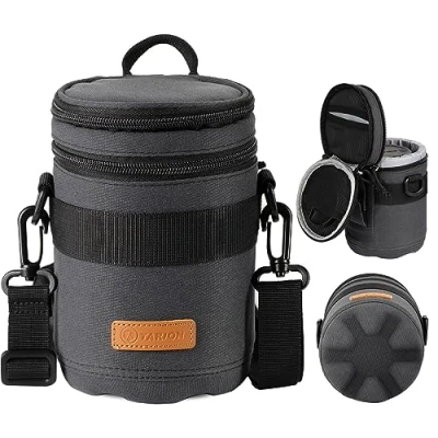 【SHOCKPROOF & ROBUST】 The reinforced bottom with EVA hard shell and the 10mm thick all-round padding offers effective protection against falls from heights of up to 2 meters /6.5 feet. The lens case is made of robust and water-repellent canvas nylon, protects against moisture, dust and scratches. 【EXTRA POCKET】A separate zippered compartment on the cap provides additional storage space for lens caps, SD cards and cleaning cloths. This allows quick access to your camera accessories without having to open the bag. 【DIMENSIONS】Bag External Size: Length: 18.5 cm / 7.2 inch; Diameter: 12 cm / 4.7 inch; The camera bag can hold lenses with a maximum length of 13.5 cm / 5.3 inch and diameter of 9.5 cm / 3.7 inch. 【VERSATILE】 A detachable shoulder strap is included for sizes from L to XXXL. Our TARION hard lens bag can also be attached to the belt, other bags or tripods thanks to the double hook & loop strap. 【COMPATIBILITY】 Our HLB hard lens pouch series includes 6 size categories. Please choose a suitable size for your lens. Compatible with Canon, Nikon, Pentax, Sony, Olympus, Panasonic, Fuji, Leica, Sigma and etc lenses.