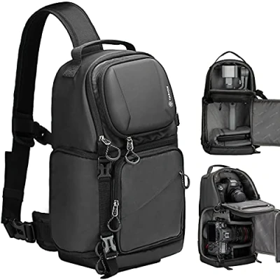 【Qualified Material】The camera shoulder strap adopts high quality 1200D nylon material, durable and water resistant. The hard shell design can effectively protect the internal elements from external damage. 【Side Access with Safety Buckle】 The DSLR camera case features a quick side opening design, you can reach and get your camera in just a few seconds. Anti-theft safety buckle can stop the loss of hand slip and effectively protect your photography equipment. 【Large Capacity】The camera shoulder bag is 6.5L, it is large enough to accommodate 1 camera and 2 lenses. You can DIY in the interior space with 3 removable dividers. 【Side Pocket with Tripod Strap】The camera travel bag with a side pocket, you can put water bottle, umbrella, tripod or monopod. A special strap is designed to firmly hold your tripod/monopod. 【Comfortable Backrest】Air mesh padded back and sling strap increase air flow, it is breathable and comfortable to wear when fully loaded while walking or traveling. The shoulder strap is long and adjustable, you can also test a large weight.