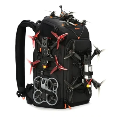 30L Capacity, Maximised Organisation : This drone backpack can externally carry up to seven 5-inch FPV drones. The main compartment for goggles and cables, top pocket for controller, front compartment for an iPad, a dedicated rear compartment for a 17.3" laptop, and side pockets for tools, cards, and spares. Fully Customisable & Protective Interior : Equipped with 10 removable, 7mm-thick dividers, the interior can be tailored to securely hold drones and accessories of various sizes. It strikes the perfect balance between compact storage and superior impact protection. Ergo-Fit Comfort Carry System - The ventilated mesh back panel, detachable & extra-wide & padded shoulder strap, along with adjustable hip belt, evenly distributes weight from shoulders to hips. All-Weather Ready with Double-Layer Defence : Made from water-repellent polyester with waterproof zips and rain cover, this backpack keeps your gear safe and dry even in sudden downpours. The Ultimate All-Round Bag for FPV & Photography : The full-open design gives you instant access to all your gear—ideal for quick changes during races. Beyond flying, it also doubles as a versatile camera bag, making it your go-to pack for both the skies and the shoot.