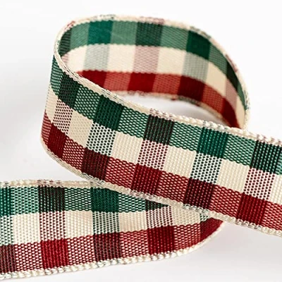 Tartan Ribbon 25mm x 10M Burgundy/Cream/Green