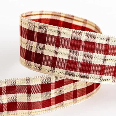 Tartan Ribbon 25mm x 10M Cream/Burgundy/Red/Gold