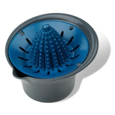 Tasty Citrus Press with Container, Manual Juicer for Fruits, Lemon Squeezer Seed Filter, Hand Juice Presser, Dimensions: 11x10x 9cm approx. 2 Lemons, Colour: Blue, Grey