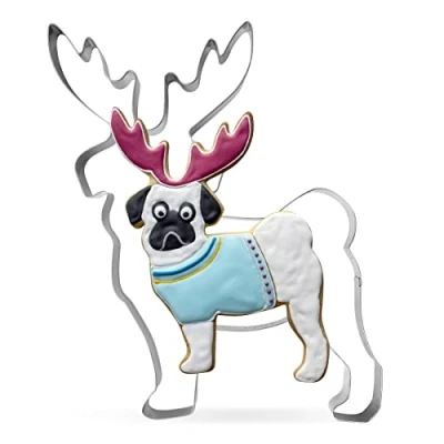 Funky shapes and motifs for baking: This cookie cutter is an extra large size and takes the shape of a pug in a pretty glossy silver Let your creativity run free: Turn the pug into a super cool decorated treat, which also has plenty of space for icing decorations, chocolate sprinkles and more Not for the dishwasher: The amusing cookie cutter with its animal figure is made of steel, and the crumbs and dough are easy to rinse by hand after use Made of ideal quality stainless steel: The cookie cutter is made of ideal-quality steel, so you can treat your friends and family to your cool and delicious cookies for years to come 1 x XXL cookie cutter in pug shape by tasty, wash by hand, stainless steel, dimensions: 20x16x2.5 cm, colours: glossy silver
