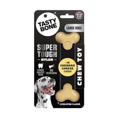 TASTYBONE, ITS IN THE NAME - Your dog's new favourite nylon chew, flavoured to the core and tested on the most aggressive chewers FOR LARGE DOG BREEDS - All dogs are different sizes, make sure to choose a size larger than your dog's mouth CHEESE FLAVOUR - Lip-smackingly delicious SAFE NYLON - Made from tough, durable virgin nylon with natural flavour. Other nylon products on the market use chemically-treated, recycled nylon, which could contain contaminants from prior use HEALTHY TEETH & GUMS - Gums and teeth become stronger and healthier with every bite, protecting against infections, tooth-loss and costly vet fees EVERLASTING FLAVOUR - Uniquely infused with irresistible flavours right through to the core. Dogs never get bored, as the flavour lasts the lifetime of the chew toy DELICIOUS & DURABLE - Full of flavour, tough and durable; keeping your dog satisfied and entertained for longer MADE IN THE UK - Supporting British business and made to uncompromising standards of quality GIVE A DOG A BONE - Visit the TastyBone Amazon store and discover the rest of the delicious range to keep your dog happy and tail-waggingly entertained