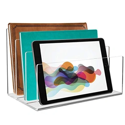 Office File Organizer: made of thick acrylic, the smooth edge design for safer use, durable and practical; modern and eye-catching appearance. File Folder Organizer Size: 9 x 6.5 x 6.5 inch. 3 sections sorter to keep document organized. Space-saving design desktop organizer. Acrylic File Holder: We can visually see what's in place and what's easy to pick up. International products have separate terms, are sold from abroad and may differ from local products, including fit, age ratings, and language of product, labeling or instructions.