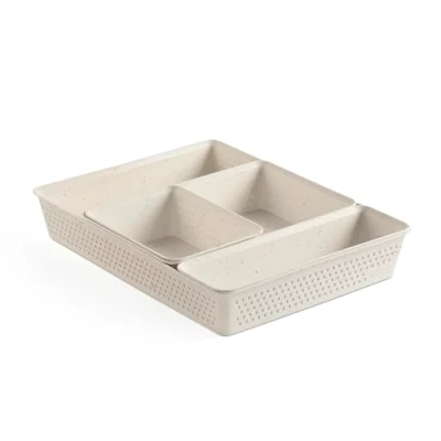 TATAY Bohol Set of 4 Organisers (1pc Slim + 1pc A6 A5 A4) Polypropylene Organiser, BPA Free, 100% Recycled Material, ECOHOME Beige