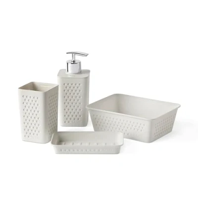 [MEASUREMENTS] Tumbler 6.5 x 6.5 x 6.5 x 11 cm; Soap dispenser 7 x 6.5 x 16 cm; Soap dish 14 x 8.5 x 2 cm and Organiser 12.5 x 16.5 x 5.5 x 5.5 cm [SUSTAINABLE] The bath set is made from 100% recycled material which contributes to environmental sustainability and reuse of resources. BPA free. [MINIMALISTIC DESIGN] The bathroom collection features a modern and elegant design that fits perfectly into any bathroom style. The BOHOL range thanks to strategically designed ventilation holes creates optimal breathability. [DESIGNED AND MANUFACTURED IN SPAIN] The materials used and the certified experience of TATAY ensure the durability and quality of all its products.