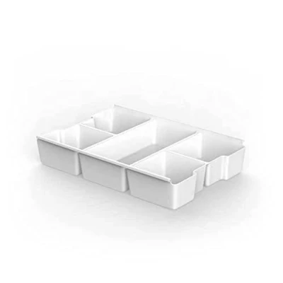 [MEASURES] 32,8 x 22,5 x 6 cm [EFFICIENT SOLUTION] Ideal organiser tray for our 7L and 15L storage boxes. Contains 5 compartments. [BPA FREE] Made from 100% recycled materials. Colour Pergamon White. [VERSATILE ORGANISER] Thanks to its practical and discreet design it is perfect for storing cosmetics, office supplies, crockery, jewellery, sundries, etc. Get a tidy and optimised space with our drawer organiser. [DESIGNED IN SPAIN] The materials used and the certified experience of TATAY ensure the durability and quality of this product.