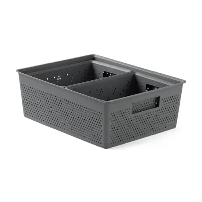 [MEASURES] 30 x 39 x 13,5 cm [SUSTAINABLE] Product made from 100% recycled material that contributes to environmental sustainability and reuse of resources. BPA free. [COMFORTABLE AND PRACTICAL] Their deep basket shape makes them practical organisers to keep what you need always at hand and in sight. In addition, they have two handles for optimal ergonomics. The baskets fit together perfectly and are modular, allowing them to adapt to any space. *Lid not included, sold separately. [MINIMALISTIC AND FUNCTIONAL DESIGN] Thanks to its minimalist design it fits in with all kinds of home decorations and spaces; renew your office desk, reorganise your pantry, tidy up your tools and screws, keep your jewellery in sight, sort the children's legos; the ideas are endless with the Bohol collection. [DISEÑADO Y FABRICADO EN ESPAÑA] Los materiales empleados y la experiencia certificada de TATAY aseguran la durabilidad y calidad de todos sus productos