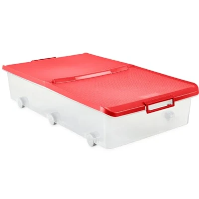 TATAY Underbed Storage Box with Double Opening Lid, 63L Capacity, Handles and Wheels, Lid 100% Recycled Materials, BPA Free, Red, Measures 45 x 78 18 cm
