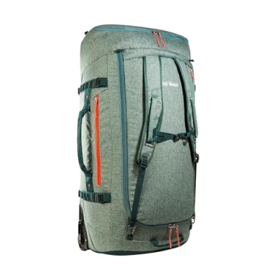 Frameless travel trolley from the German outdoor brand Tatonka made from robust and PFC-free materials and with 140 litre volume Trolley or backpack? Both! Thanks to the stowable backpack straps, the duffle scooter can not only be pulled, but also carried Small pack size (44 x 40 x 17 cm): the roll bag can be folded up and stored in its own deck pocket to save space Large main compartment with zip opening and zipped mesh pocket inside Adjustable straps to hold luggage in main compartment