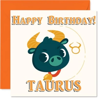 MAKE HIM SMILE WITH THIS UNIQUE BIRTHDAY CARD: This exceptional quality Male birthday card for him shows the design 'Taurus'. If you are looking for a unique birthday card Boys for him, then then this happy birthday card is bound to make him smile. Not just a birthday card for Men this could also be a birthday gifts for Cousin, Nephew, Husband, Neighbour, Colleague, Dad, Son or Friend. WHAT DO YOU GET: The card is printed on one side and BLANK ON THE INSIDE to allow you to write your very own message. The unique fun design is printed on a specially sourced and environmentally responsible board. At 360 microns thick the natural white one-sided gloss board has a quality look and feel. Supplied with a coloured gummed envelope to complement the design and ready to be sealed and sent in the post. Great Cousin birthday cards, Boys birthday card, Nephew birthday card. NO INK SMUDGES: There is nothing worse than writing inside a card to find that the shiny surface makes the ink smudge. This is why we use a high quality one sided coated board. The uncoated side will absorb more of the ink from your pen to make smudging a thing of the past. Birthday cards for Husband, Birthday card for Neighbour, Birthday cards for Colleague. SIZES: Greeting Card = 145mm x 145mm, Envelope = 155mm x 155mm, Card Thickness = 360 micron. Dad birthday card, birthday cards for Son, unique birthday cards for Friend, Boys birthday card Cousin, Nephew birthday card. MADE AND QUALITY CHECKED IN THE UK: We print and manufacture all our products right here in the UK so you can be sure of a fast turnaround and a product that is expertly made. Using environmentally responsible premium board our card is conscious of the responsible management of the world's forests - perfect birthday cards for Men, fun birthday cards for her, Nephew birthday cards, male birthday cards.