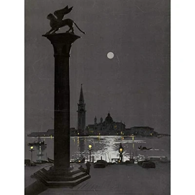 Tauzan Venedig bei Nacht, Löwensäule, Kunstwerk, Kunstdruck auf Leinwand, Premium Wandbild