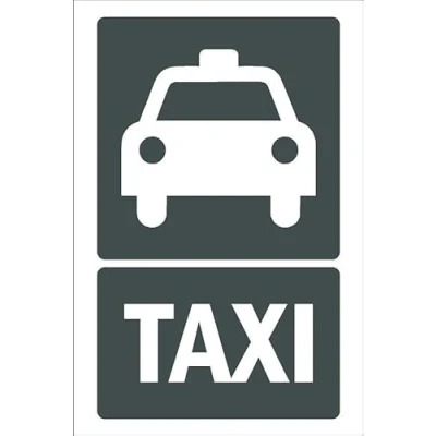 Taxi, gray sign. Self adhesive sticker. Printed using the latest digital technology and laminated for extra durability. Remove backing film and apply to dry, smooth, oil free surface. All signs come with a 5-year warranty. All our signs are UV resistant meaning they will not fade in sunlight. Our vinyl stickers are temperature resistant from -40°C to +80°C.