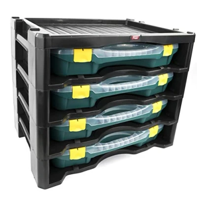 Multibox with 4 organiser cases with mobile dividers 24-26. Sturdy handle for easy transport. Safety stopper to stop case from falling. Stackable for greater organisation. Dimensions. Multibox 530x376x430mm, Case 460x350x81 mm, Manufacturer: Tayg