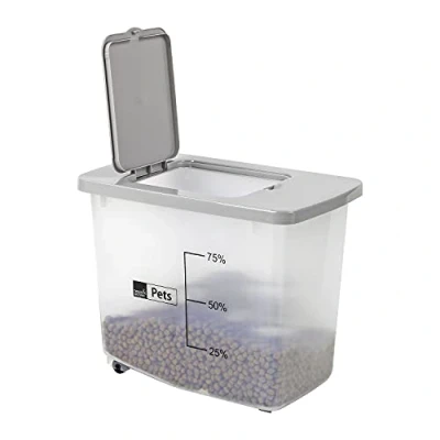 Taylor & Brown 30L/13KG Airtight Pet Food Storage Container Flip Top With Wheels Transparent Plastic Birds Dog Cat Animal Dry Seed Dispenser Bin (Grey)