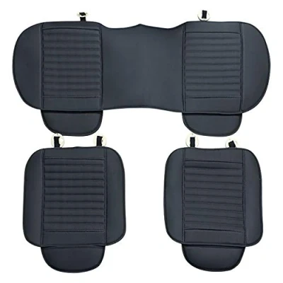 Taylor & Brown 3pc Universal Front and Rear PU Leather Car Seat Bottom Cushion Cover Set with Pockets Pad Protector Non Slip Fit 90% Vehicles (Black (Lined))