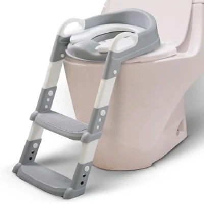Taylor & Brown Adjustable Potty Ladder Seat for Toilet Training with Steps, Handle Soft Cushion Anti Slip Stool Toddlers Children Unisex Foldable Easy Assembly Splash Guard Included (Grey)