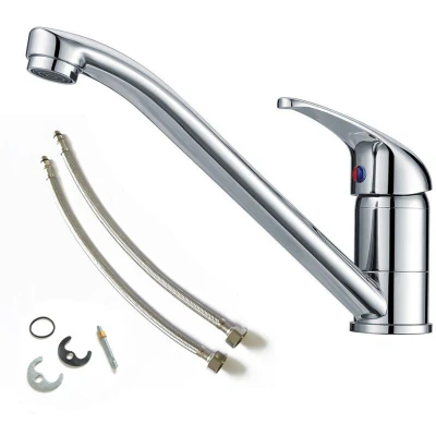 General description This Modern Monbloc Kitchen Sink Mixer Tap features a sleek chrome finish and a single lever swivel spout, making it a stylish and functional addition to any kitchen. Crafted from high-quality solid brass, this tap is designed for durability and ease of use. Technical specifications Model Number: RAKKIT001 Dimensions: 5cm x 24cm x 17cm Weight: 1.0 Kg Tap Height: 174mm Tap Spout Reach: 212mm Minimum Operating Pressure: 0.2 Bar Tap Type: Sink Mixer Mounting: Deck Tap Handle(s): 1 Tap Hole(s): 1 Valve/Cartridge Type: Manual Body Shape: Round Material: Brass Color: Chrome Brand: RAK Ceramics Style: Modern Installation Suitable for deck mounted installation Easy to install, saving time and money Usage Designed for kitchen sink applications Standard valve operation for ease of use Other information Supplied with a 15-year guarantee from the manufacturer (serviceable part with a 2-year guarantee) EAN Barcode: 5300614873898