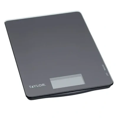 Harts of SturThe sleek Taylor Pro Black Glass Digital Dual 5kg Kitchen Scale features a stylish black glass surface that's odour and stain resistant as well as being easy to clean with a damp cloth.With an ideally-sized weighing platform (16.5cm x 23.5cm) for weighing liquid and powdered ingredients in bowls or containers, solid ingredients can be weighed directly on the platform.The handy Tare function returns the measurement back to zero - perfect when adding different ingredients into one mixing bowl.The scales feature an easy to read digital display that can be switched between kilos, pounds or litres using the Unit button, up to a maximum of 5kg, 11lb or 5 litres.The Taylor Pro Black Glass Dual Kitchen Scale is powered by 2x CR2032 batteries (supplied).
